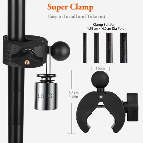 - 【Super Pipe Clamp】 - The super clamp can be quickly and securely attached to the top pole of microphone stands, booms, music stands, and open size poles from 1.53cm/0.6" to 4.0cm/1.57".