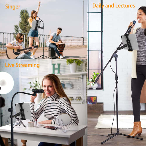 - 【Great Compatibility】 - This iPad hold microphone stand is compatible with devices with screen size from 4" to 13.5" with thick case.All iPad series, all Samsung Galaxy Tab series, and all other iPhone and Android smartphones, monitor width less than 9.25 inches and thickness less than 0.75 inches.