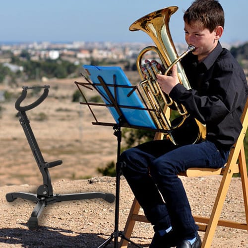 Folding Alto Saxophone Stand - Foldable Tenor Saxophone Stand with Metal Triangular Base for Kids, Birthdays, and Portable Instruments