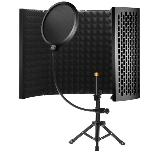 Microphone Isolation Shield with Five Panels, Portable Tripod Stand, Filter, Reflection Filter, High-Density Sound Absorbing Material, Desktop Compati