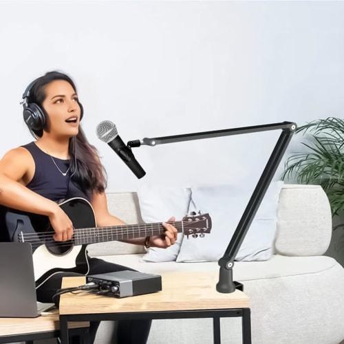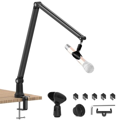 Adjustable Microphone Arm, Black, Desktop Microphone Stand with Microphone Clip Holder and Microphone Screw Adapter, 360-Degree Rotation, Cable Manage