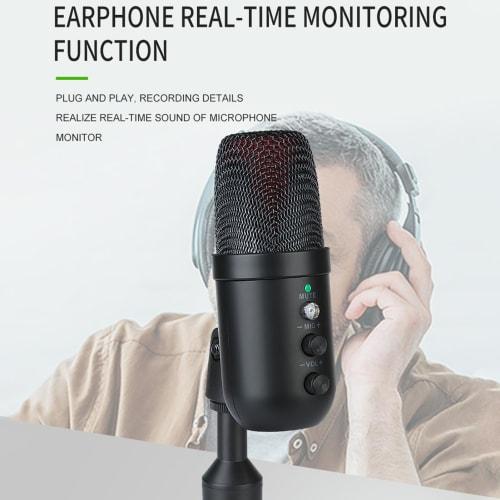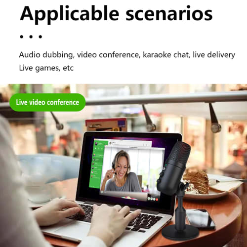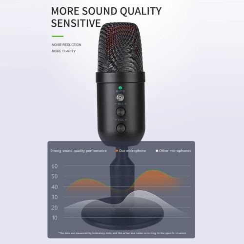 USB Condenser Microphone, MU1000 Phone/Computer Condenser Microphone with Built-in DSP and Reverb Processing, One-Key Mute, RGB Light, Noise Cancellat