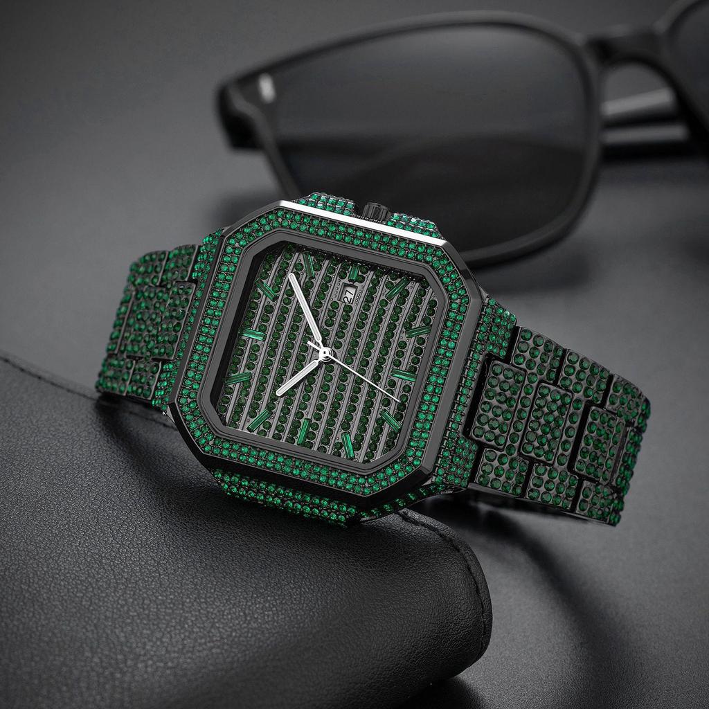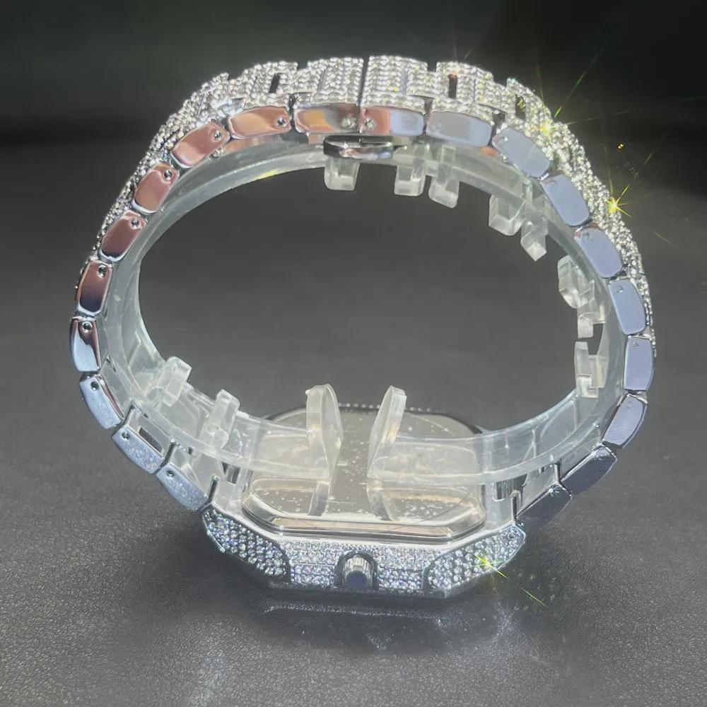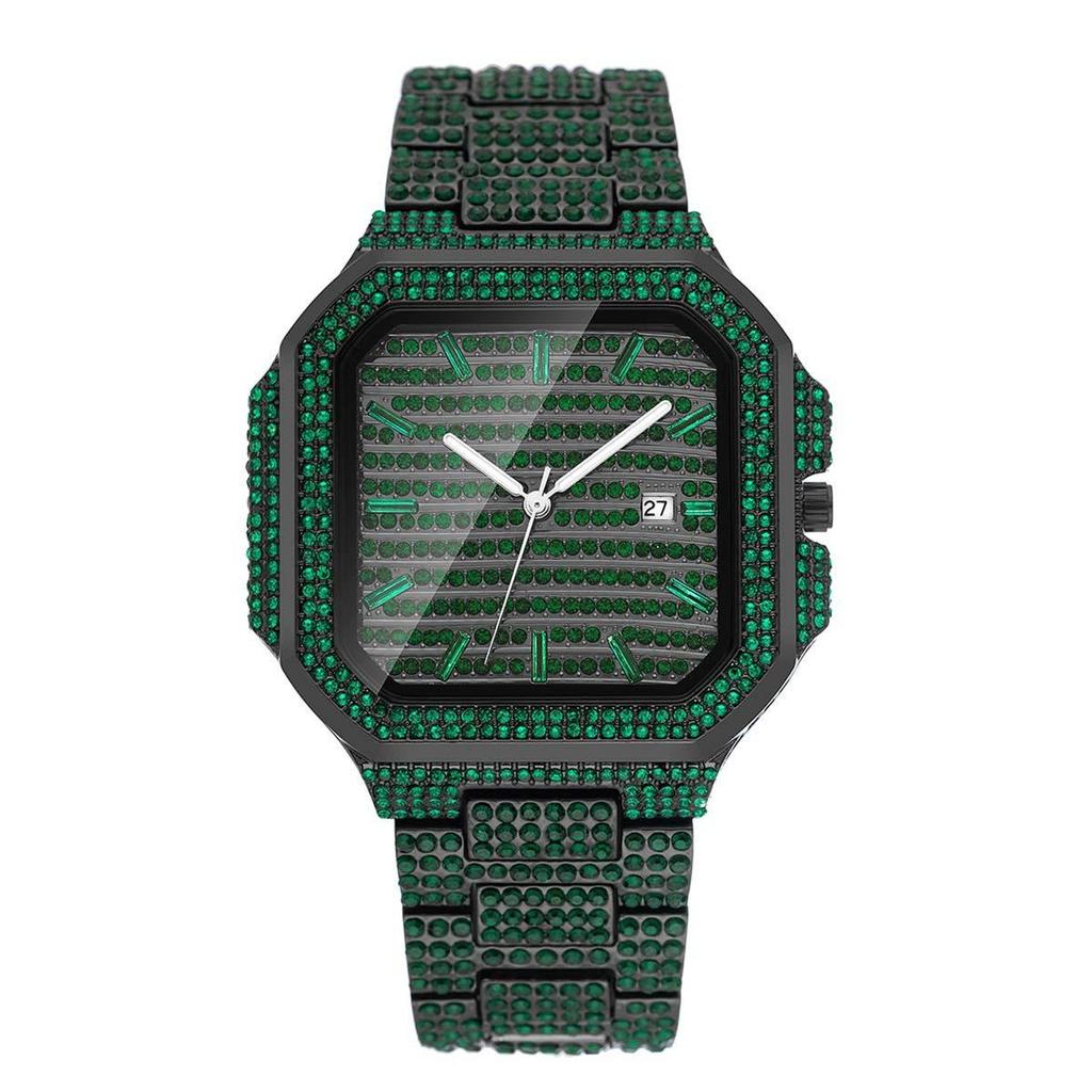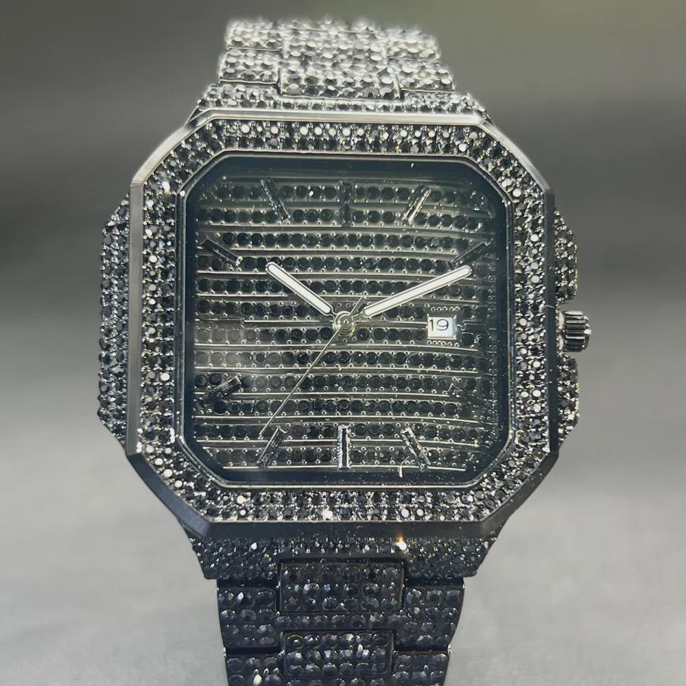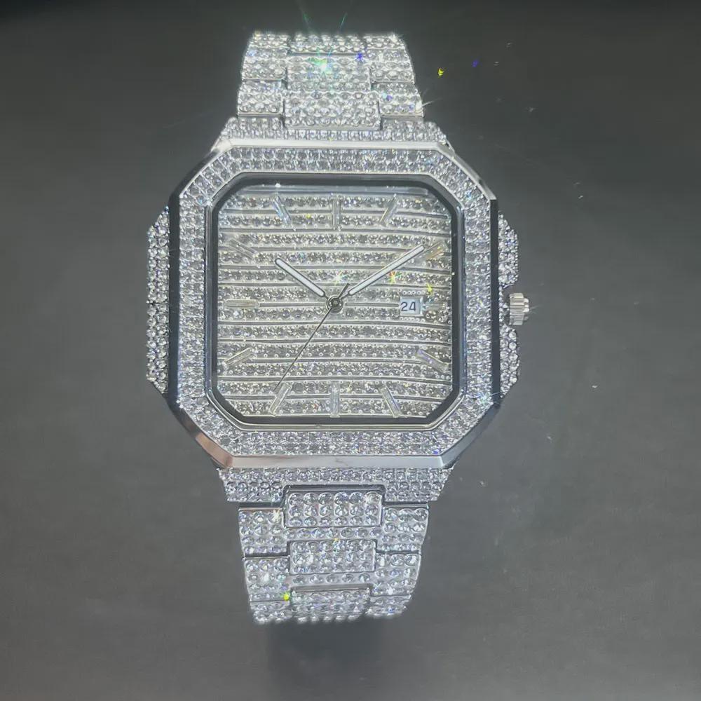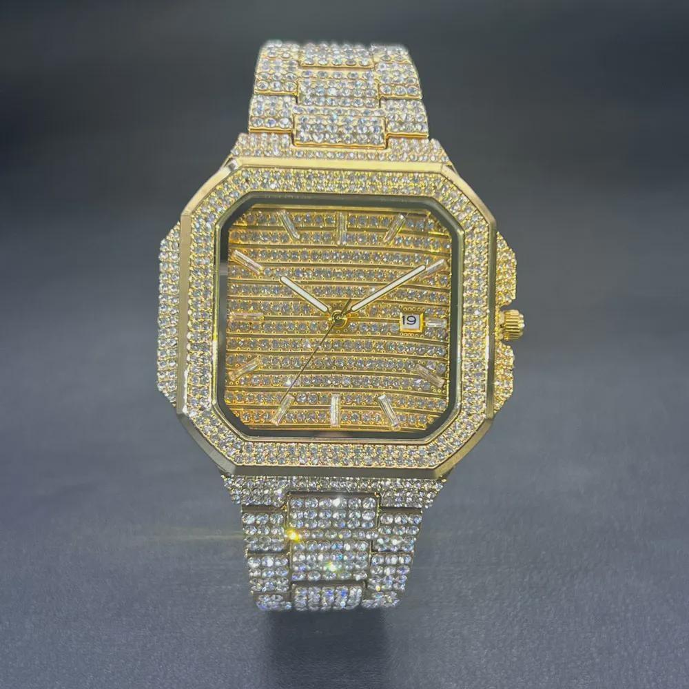 Мужские часы Роскошные Золотые Квадратные Мужские Наручные часы Сплавной Ремешок Полностью Бриллиантовые Деловые Кварцевые Часы для Мужчин Часы Подарки