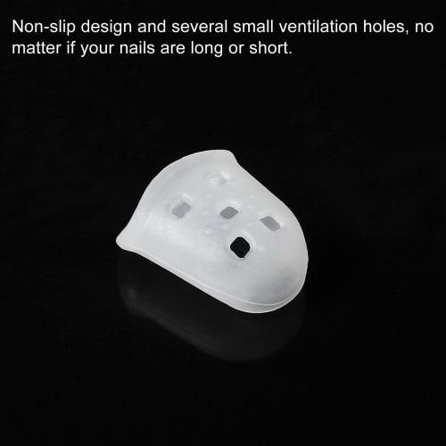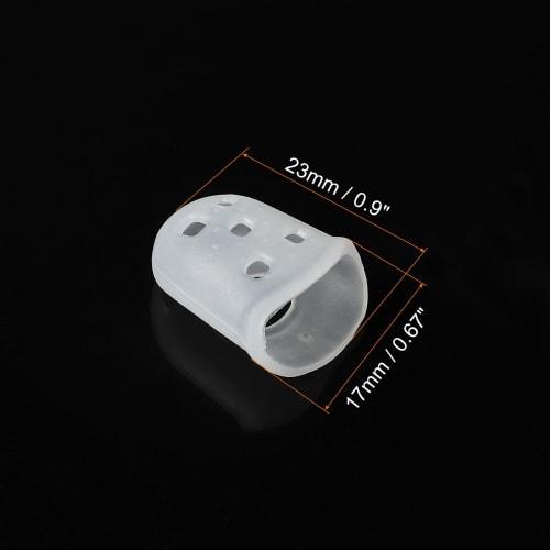 Non-slip reusable finger protector with holes is the perfect accessory for playing guitar, counting paper, sewing, crafting, etc.Suitable for mailers, craftsmen, guitarists, etc.It can be widely used in homes, offices, factories, etc.Specifications Material: Silicone Specification: 0# Overall Height: 23 mm Bottom Outer Diameter: 17mm Package Contents: 10 x Silicone Fingertip Protectors Advantages Made of durable silicone material, these fingertips are made of superior flexible silicone and are designed to protect your fingers from friction.Non-slip design and some small ventilation holes, no matter if your nails are long or short.Steps: Just apply it directly to your finger.Comfortable and convenient to put on and take off.Reusable and durable.Note: Please check the size before ordering.