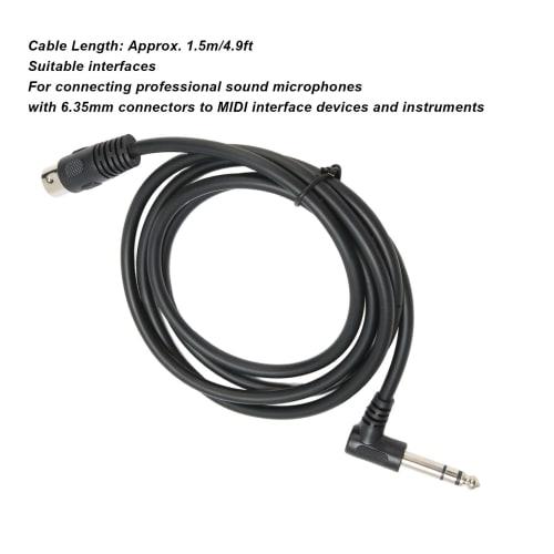 Кабель 6,35 мм штекер - MIDI Din 5-контактный, под прямым углом 90 градусов, сверхпрочный штекер, спиральное экранирование, совместим с MIDI-клавиатурами, синтезаторами и гитарами