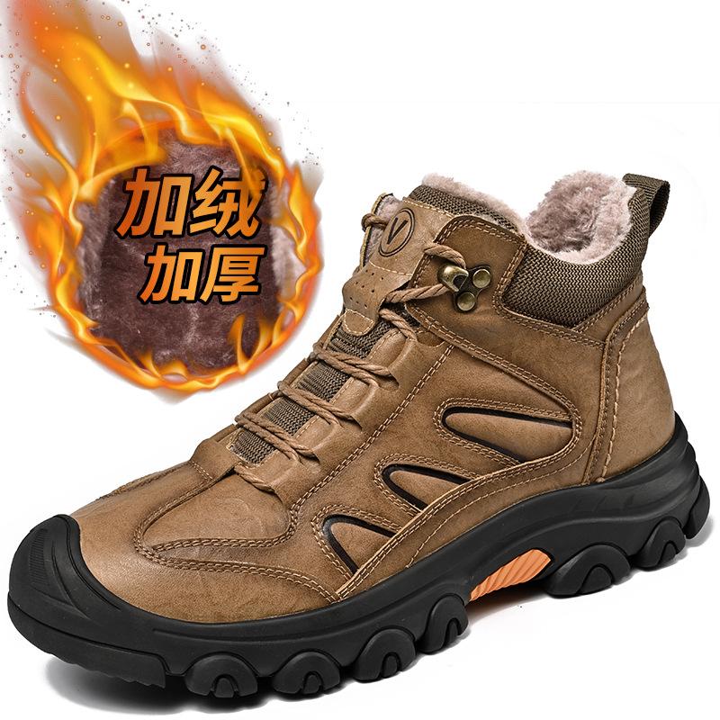 Рабочая обувь мужская 2025 новая зимняя бархатная теплая уличная повседневная обувь средней высоты на мягкой подошве противоскользящая обувь для альпинизма большого размера