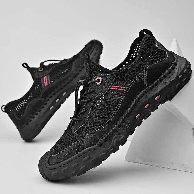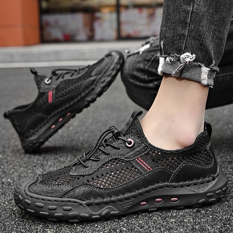 Сетчатая обувь мужская 2025 лето дышащая сетка полая на одном педале повседневная обувь спортивная нескользящая большой размер шовная подошва мужская обувь