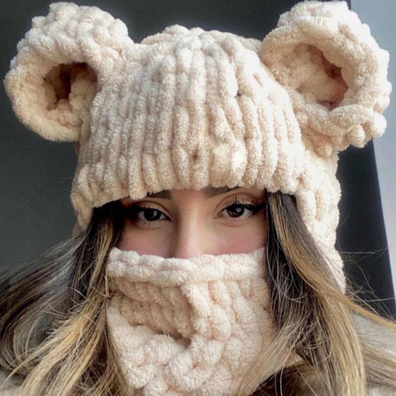 Вязаная шапка с медвежьими ушками для взрослых, теплая, с интегрированной маской, шерстяная шапка