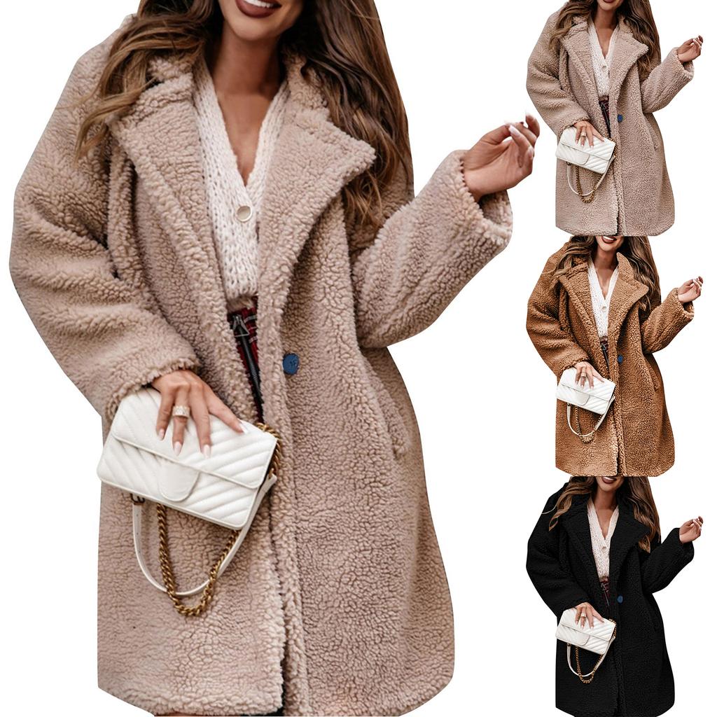 Женское свободное пальто с длинным рукавом, модное, большого размера, теплое плюшевое