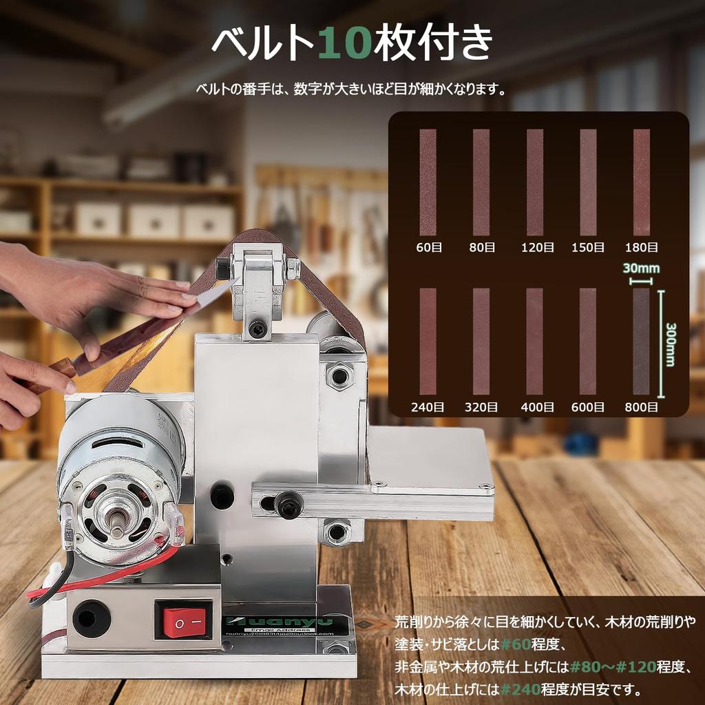 [Includes 10 belts] By changing the belt size (#60-#800), you can perform a variety of grinding tasks, from rough grinding to finishing. The higher the belt size, the finer the grinding. Belt size: 330*30mm