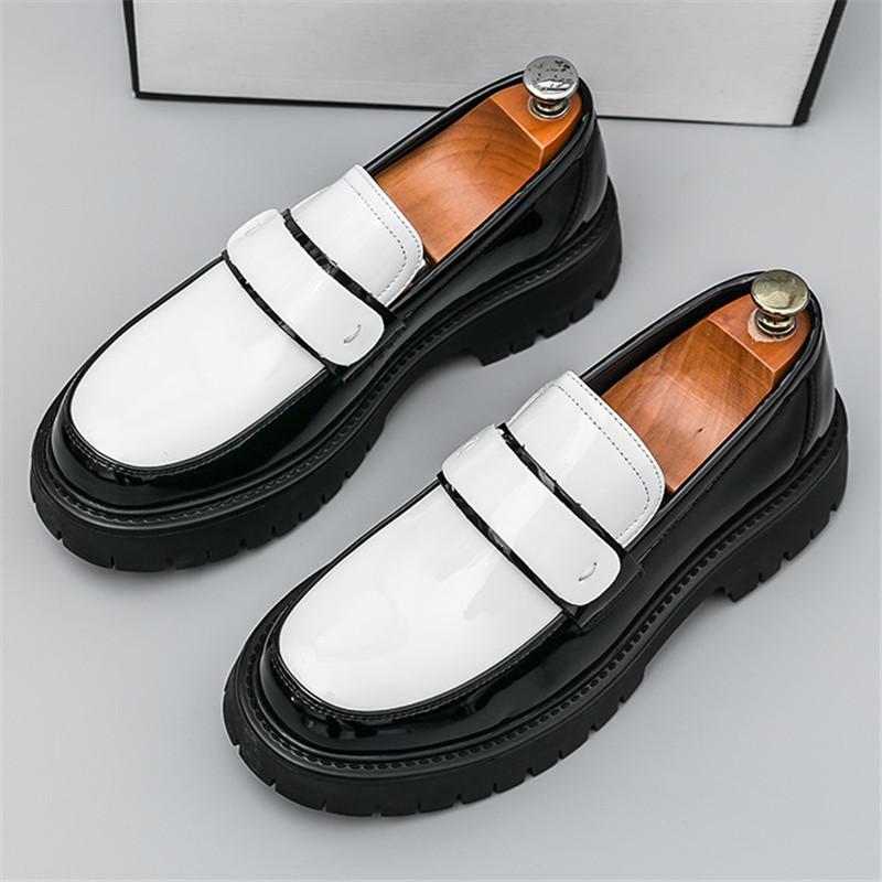 Дизайнерская мода Новые мужские черно-белые смешанные повседневные кожаные туфли Мужские лоферы для увеличения роста Свадебное платье Формальная обувь