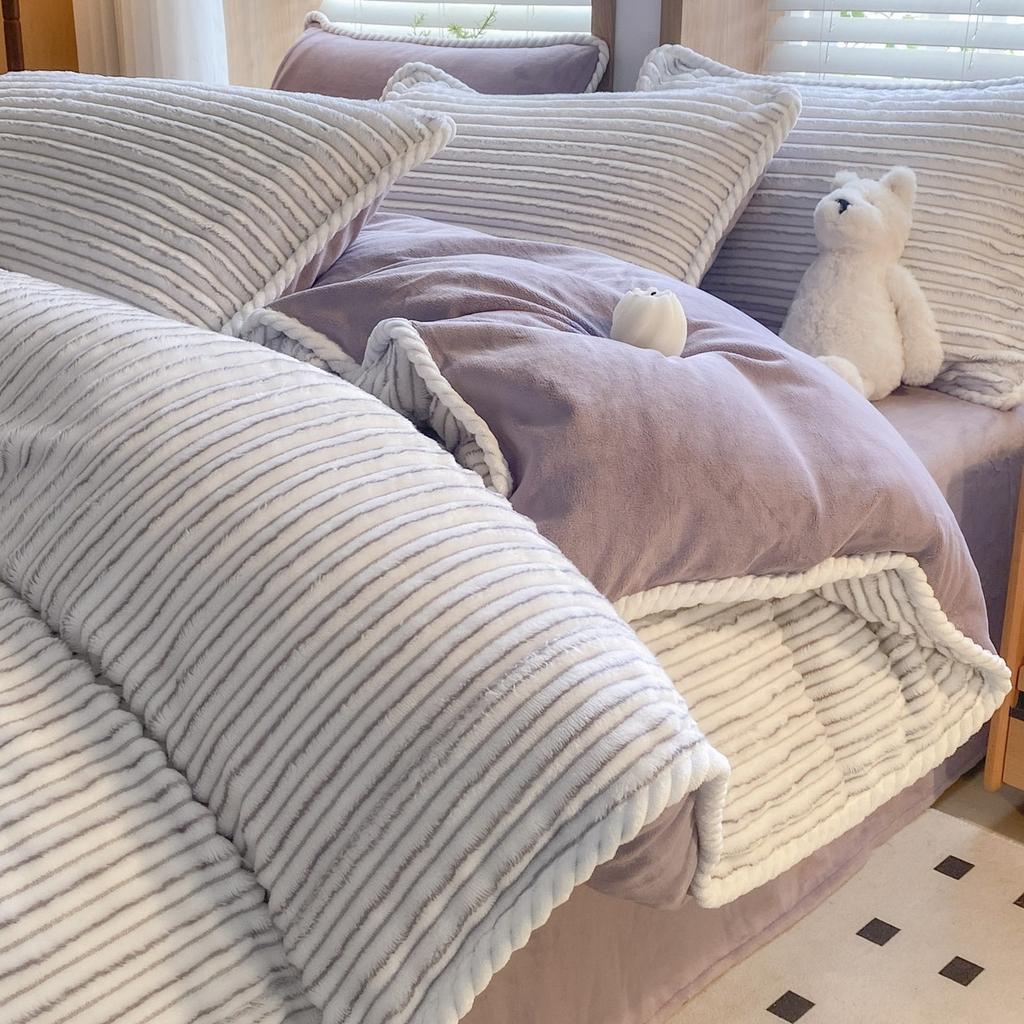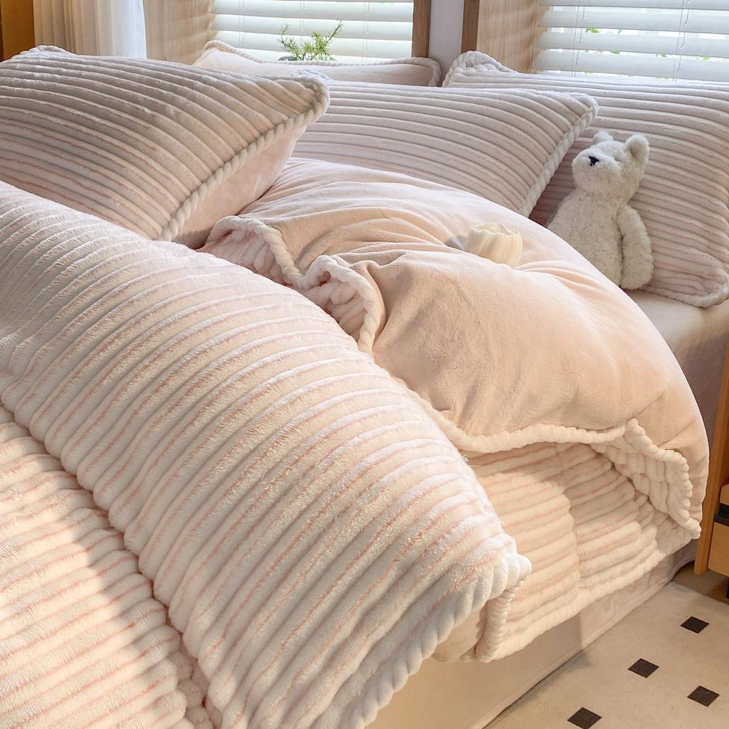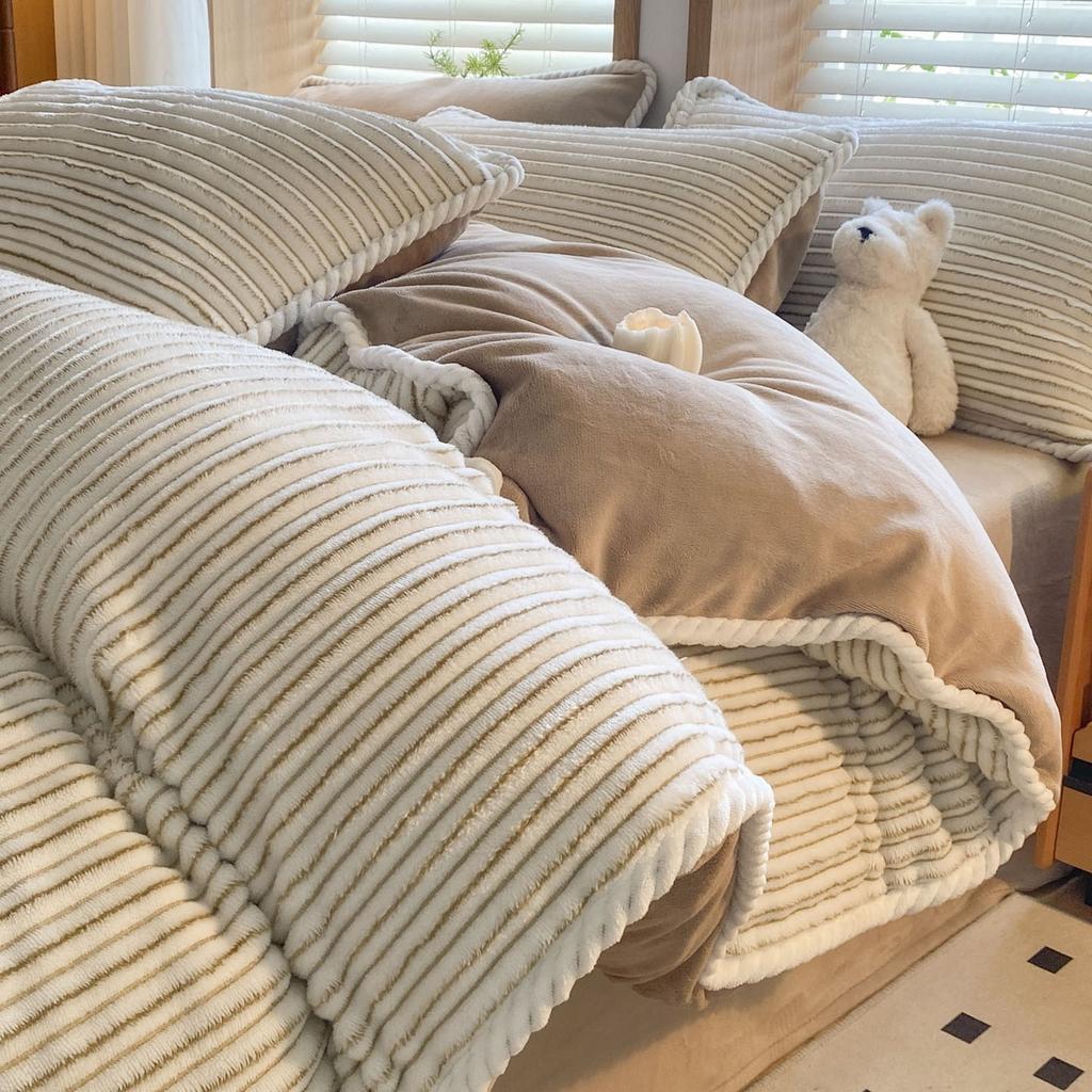 Осенне-зимний толстый велюровый комплект из четырех предметов Коралловый велюр Жаккард Молочный велюр Комплект из четырех предметов Постельное белье Комплект из трех предметов Простыня Пододеяльник
