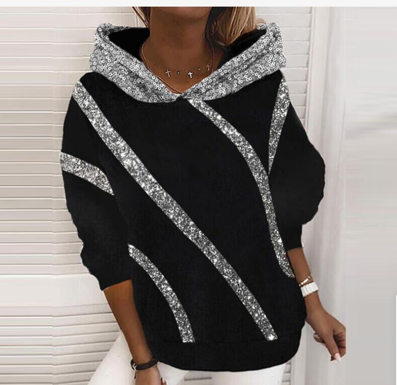 Свободный худи с глиттерным принтом для женщин