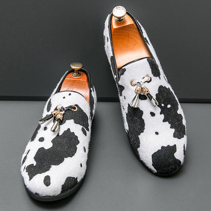 Роскошные Новые Дизайнерские Черные Белые Лоферы с Кисточками из Смешанной Кожи для Мужчин Повседневная Свадебная Формальная Обувь Zapatos Hombre