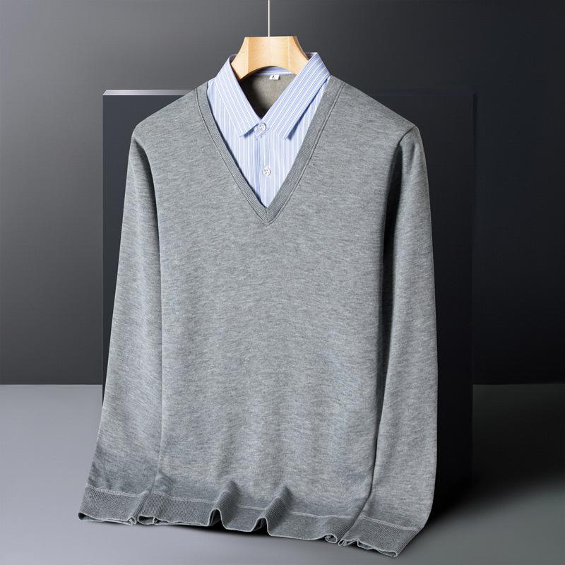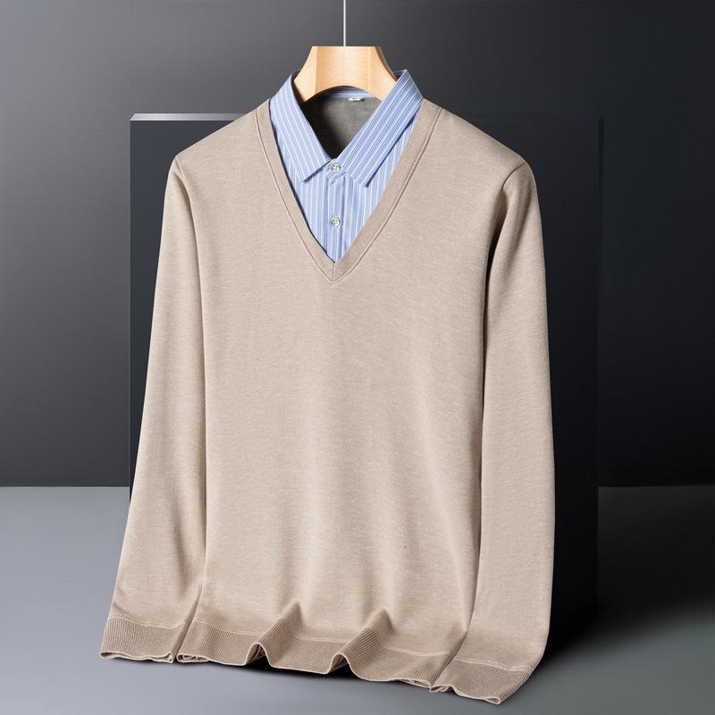 Новый осенне-зимний вязаный универсальный полосатый топ-рубашка с воротником-стойкой, мужской свитер, базовая рубашка, нижнее белье