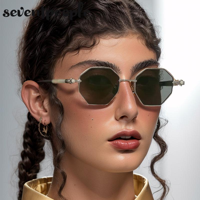 Винтажные маленькие шестиугольные солнцезащитные очки Женские Мужские Люксовый бренд Классическая металлическая оправа Многоугольные очки Защита UV400 Наружные очки