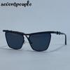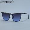 Классические солнцезащитные очки «кошачий глаз» в стиле панк для женщин, трендовые металлические квадратные солнцезащитные очки-щитки класса люкс, винтажные уличные солнцезащитные очки для леди