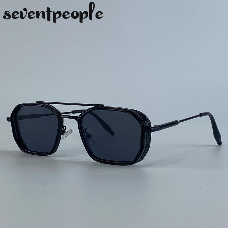 Steampunk Vintage Square Sunglasses Women Luxury Brand Trendy Metal Polygon Double Beam Sun Glasses Outdoor Shades UV400