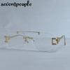 Punk Rimless Polygon Sunglasses Women Luxury Brand Vintage Frameless Square Sunglass Trendy Double Beam Shades For Ladies