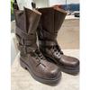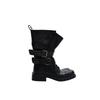 Британский стиль ретро черные средней длины рыцарские ботинки женские 2025 весна и лето новые мягкая кожа толстый каблук пряжка ремня ботинки-локомотивы