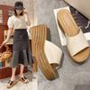Slope heel cool slippers women's 2025 spring and summer new Korean version thick bottom one word beach women wear muffin bottom slippers