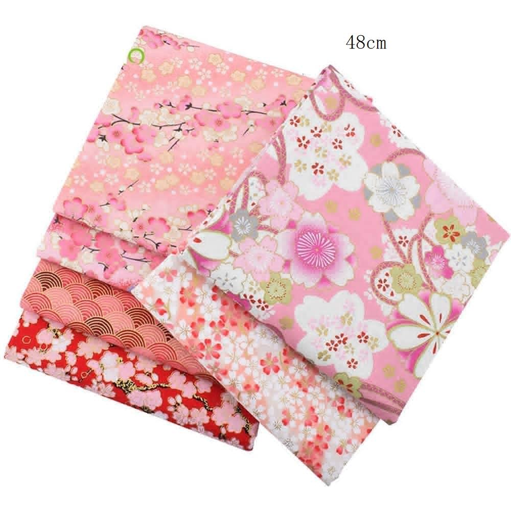 misaki Japanese Pattern Fabric Scraps Japanese Cut 48cm Set, Floral, Metallic, Cotton, Fabric, Cloth, Stylish, Crafts, DIY, Patchwork, Handmade,