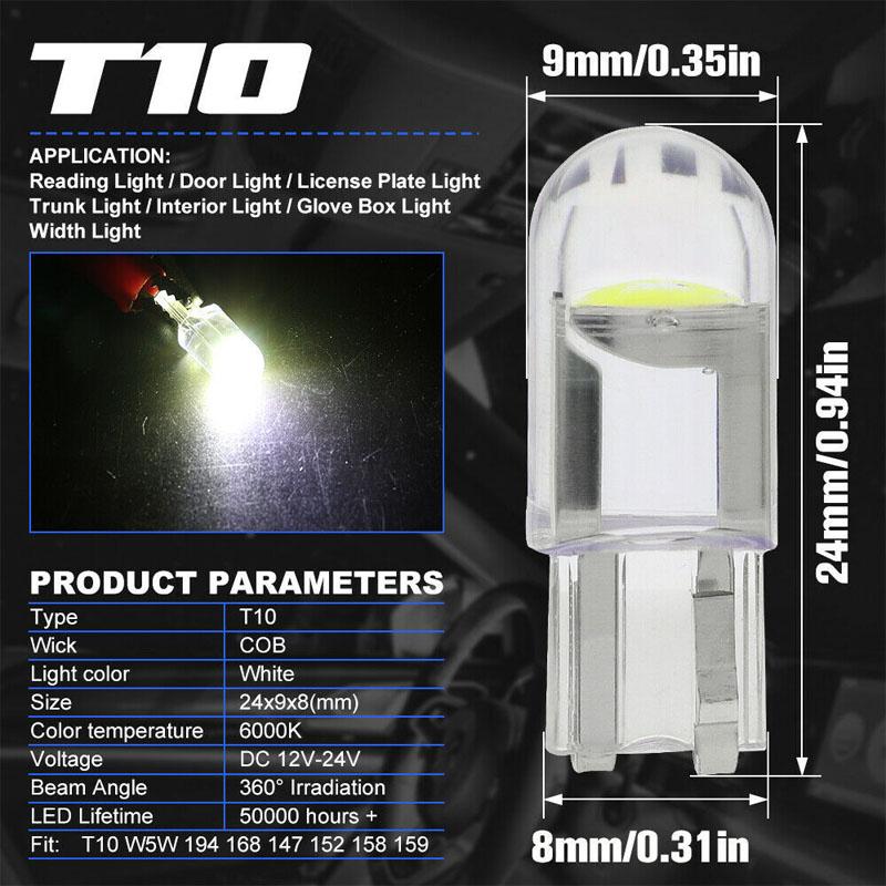 10 шт. Автомобильная светодиодная лампа T10 W5W WY5W Сигнальный свет Белый 12 В Автомобильные лампы номерного знака Плафоны освещения салона Автомобильные клиновые габаритные огни