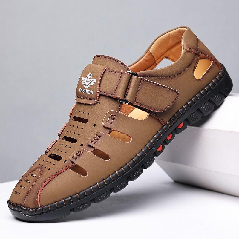 Летние мужские сандалии Новые дышащие повседневные сандалии с перфорацией Пляжная обувь для мужчин Нескользящая обувь для вождения Деловые кожаные сандалии