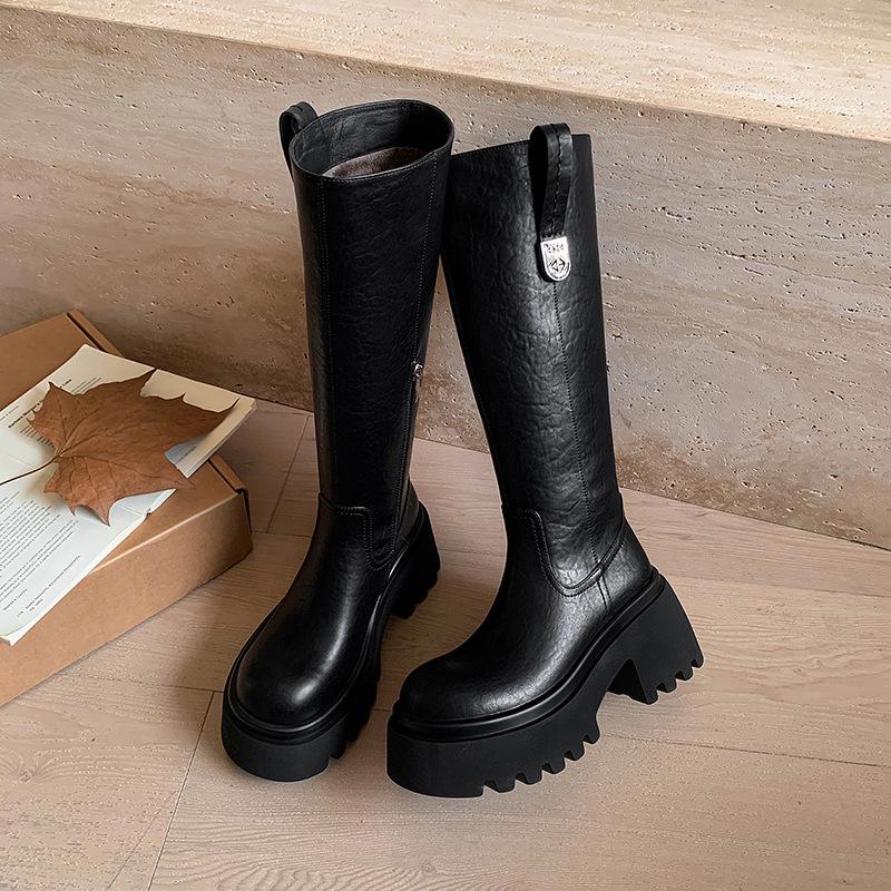 Нишевый дизайн милые крутые малышки платформа рыцарские сапоги 2025 осень и зима новая мода высокие сапоги круглый носок толстый каблук сапоги женские