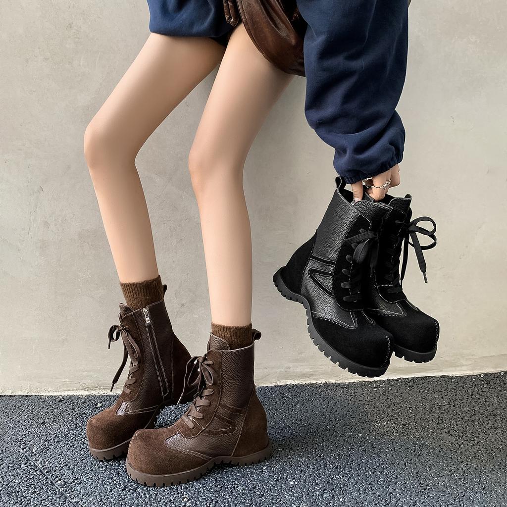 Британский стиль модные универсальные ботинки Мартина на шнуровке 2025 осень и зима новые круглый носок плоская подошва с внутренней платформой маленькие короткие ботинки женские