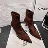 Женская обувь, элегантные высокие тонкие каблуки, новые атласные короткие сапоги с острым носком, женские эластичные ботильоны, короткие элегантные сапоги