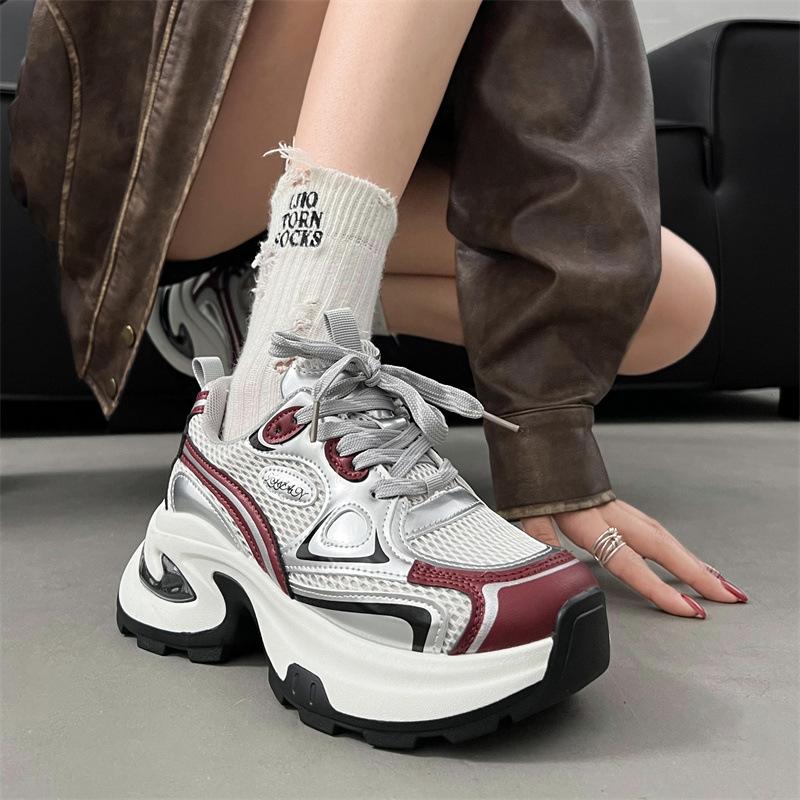 Модная тенденция увеличивает платформу папы обувь женские 2025 новые осень и зима популярные бархатные легкие жареные уличные кроссовки