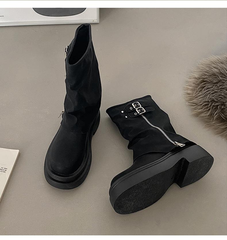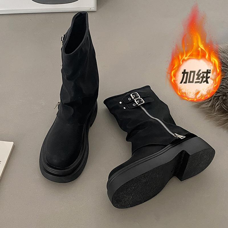 Brown slim with skirt thick-soled British Martin boots women's 2025 new autumn small thick heel short boots