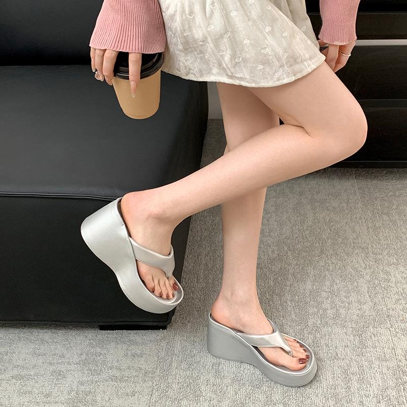 Модные универсальные толстоподошвенные увеличивающие рост шлепанцы женские 2025 новый летний стиль Инфлюенсер пляжные крутые тапочки — купить товар онлайн с бесплатной доставкой по всему миру!