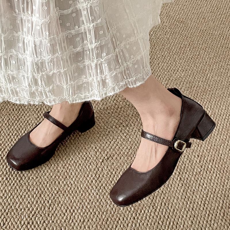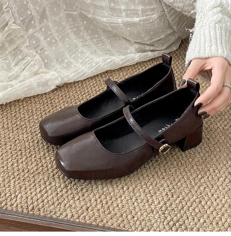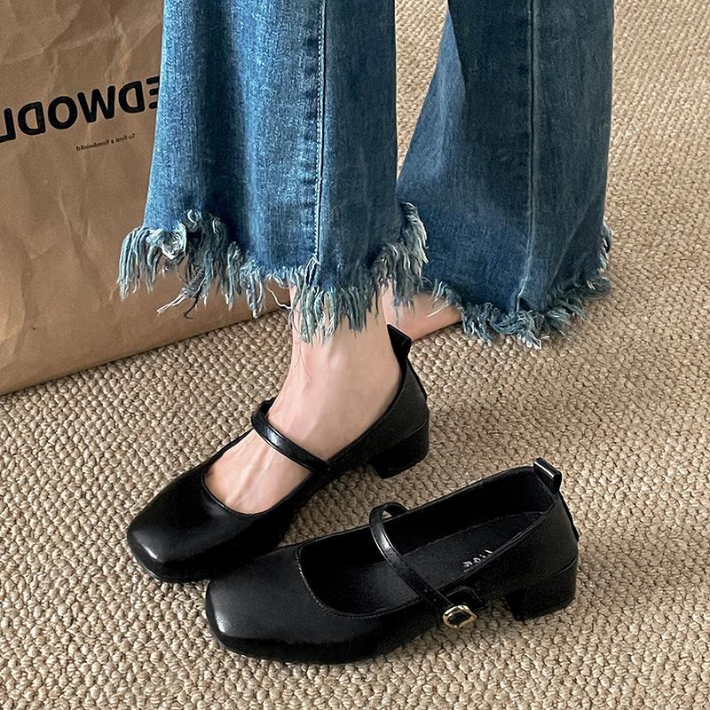 Модный темперамент французского ретро квадратного каблука с толстой подошвой, маленькие кожаные туфли для женщин 2025 года, новые весенние и осенние туфли Мэри Джейн для увеличения роста