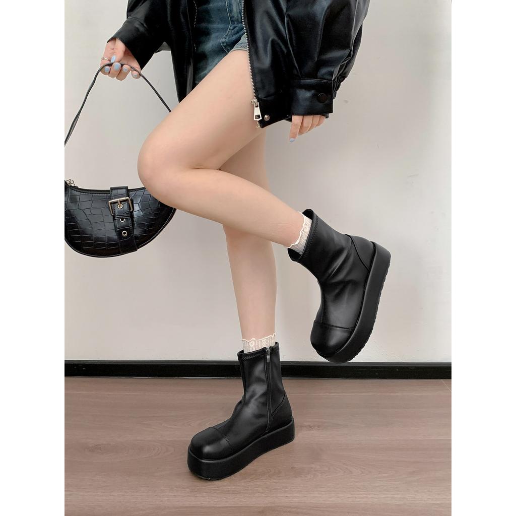 Ретро белые британские мартинсы на толстой подошве женские 2025 новые осенние юбочные увеличивающие рост и стройнящие короткие ботинки