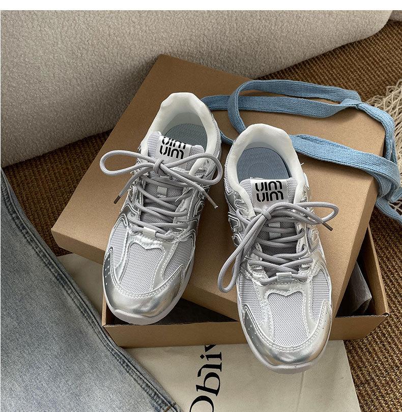 Модные универсальные серебристые ретро кроссовки на плоской подошве в немецком стиле женские 2025 новая летняя легкая и дышащая спортивная обувь Форрест Гамп