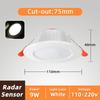 Умный светодиодный встраиваемый потолочный светильник с датчиком движения PIR / радаром 9 Вт 12 Вт, бытовой встраиваемый потолочный точечный светильник