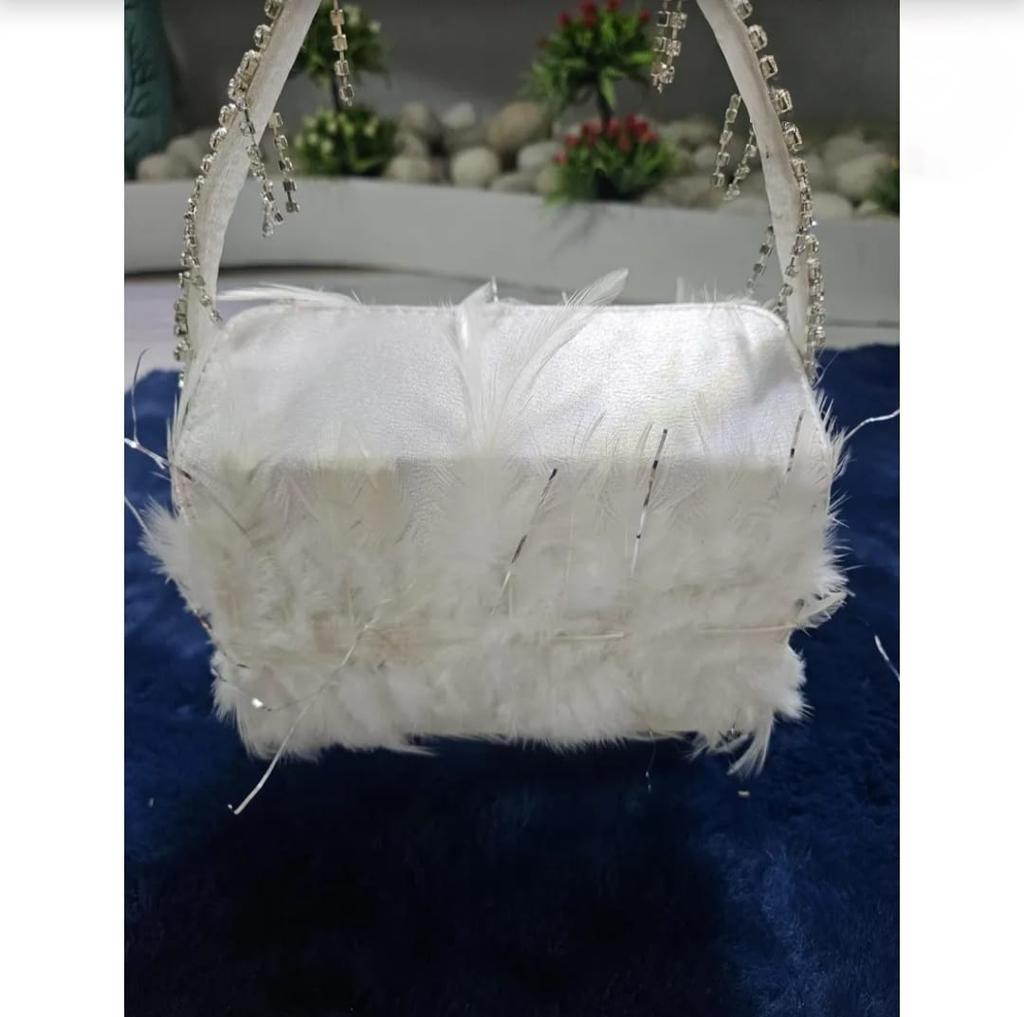 роскошная белая сумка из перьев – идеальный аксессуар для свадеб, вечеринок и элегантных вечеров. Эта уникальная сумочка, украшенная мягкими перьями и сверкающей ручкой со стразами, добавляет нотку изысканности и очарования любому наряду.