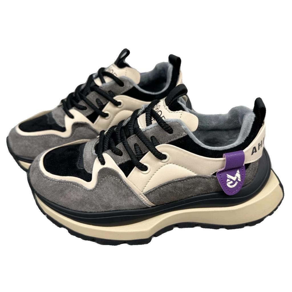 Вафельные туфли Forrest Gump женские бархатные год осень и зима универсальные увеличивающие рост и стройнящие толстая подошва сочетание цветов спортивные