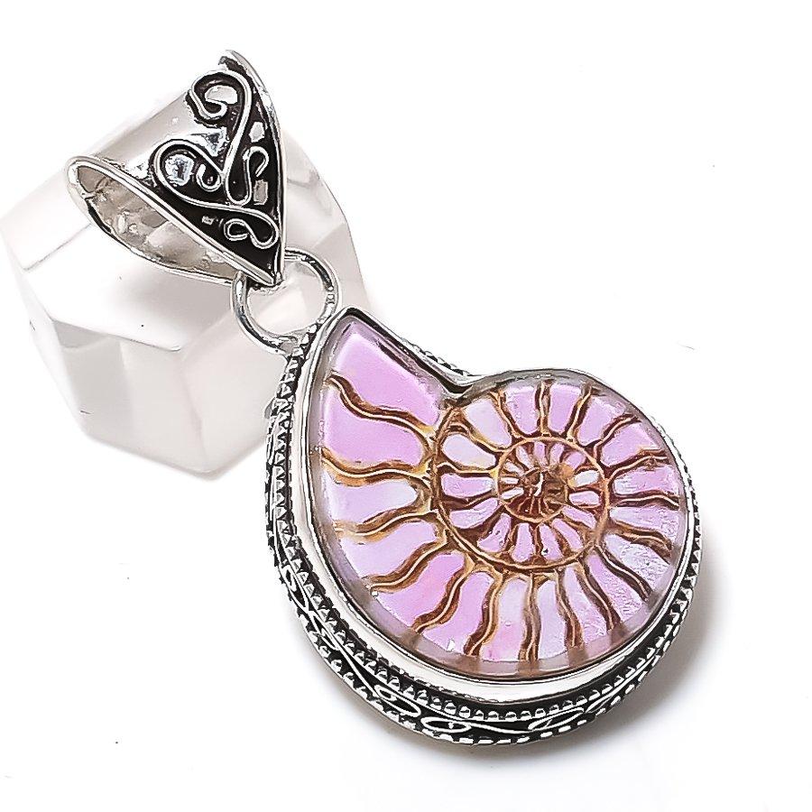 Ископаемый аммонит Драгоценный камень 925 стерлинговое серебро Ювелирная подвеска 1,85"