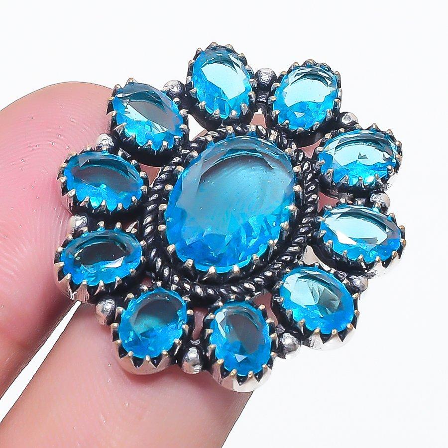 Ювелирное кольцо из стерлингового серебра 925 пробы, швейцарский голубой топаз, размер 7