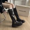 Сапоги на толстом каблуке, толстой подошве, тонкие эластичные сапоги, женские 2025 новые осенне-зимние коричневые маленькие высокие сапоги-рыцари