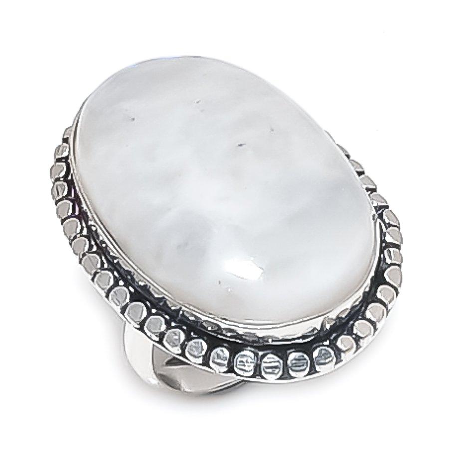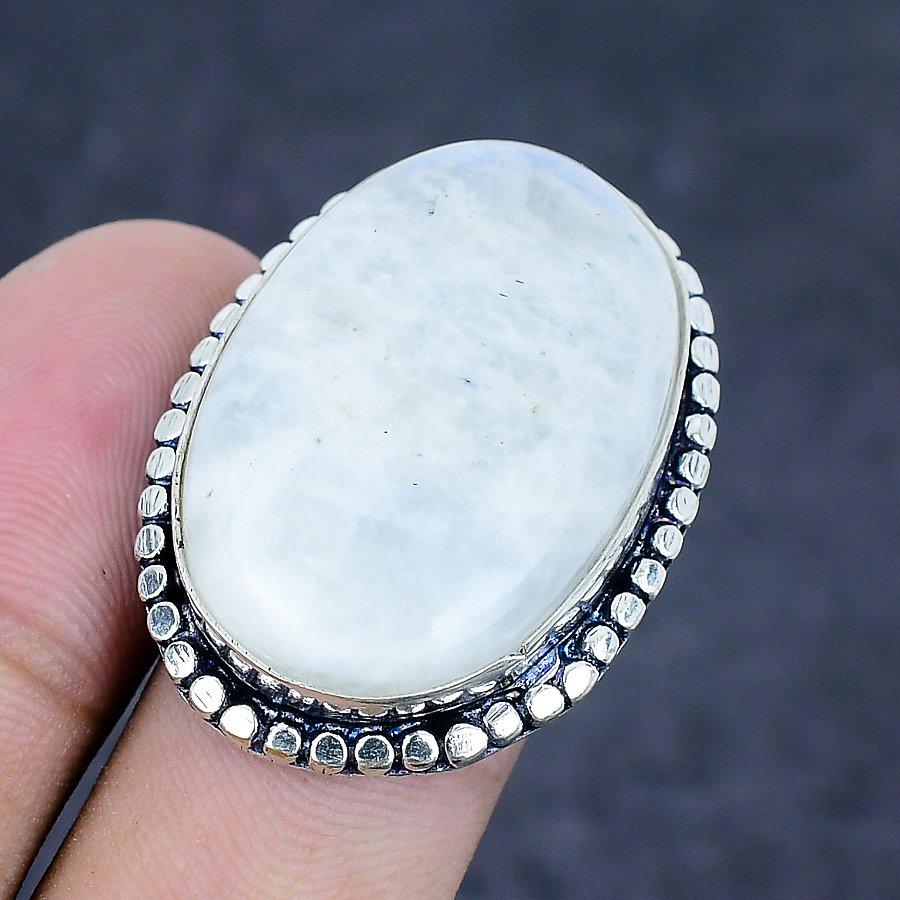 Лунный камень Драгоценный камень 925 Стерлинговое серебро Ювелирное кольцо Размер 7