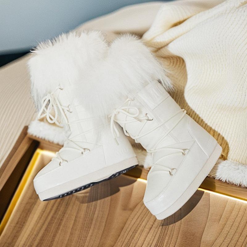 Moon MOOON зимние ботинки-луноходы на толстой подошве с внутренней высотой, женские 2025, зимние утепленные теплые водонепроницаемые хлопковые ботинки, нескользящие, с мехом на голенище
