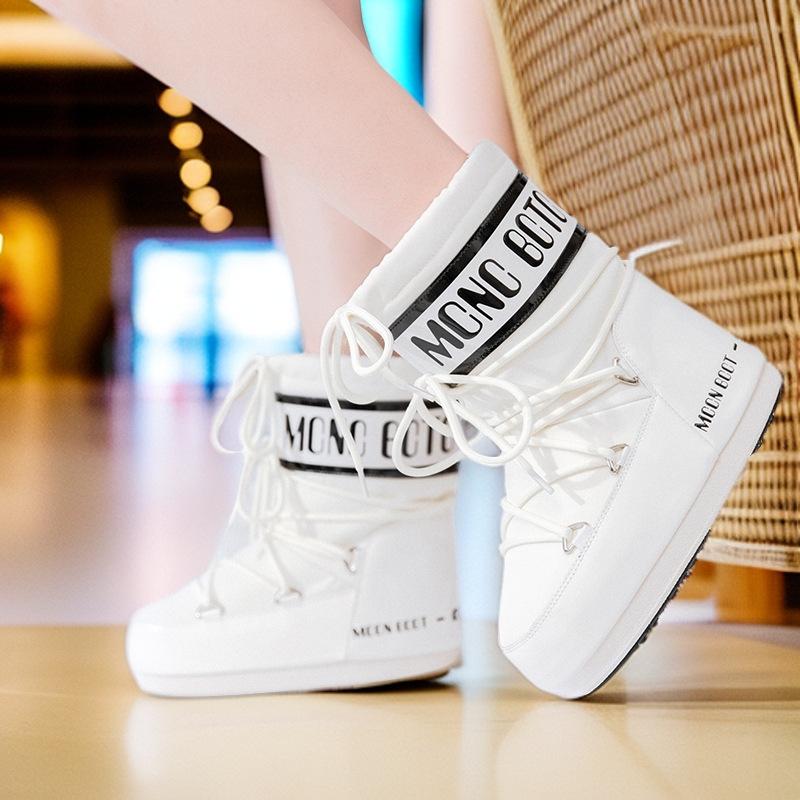 Размер 33 женские ботинки 2025 теплые новые лыжные зимние лунные утолщенные средней длины водонепроницаемые и нескользящие снежные космические