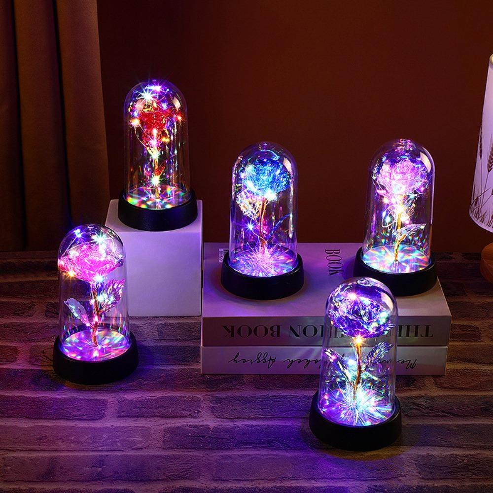 Красная Разноцветная Роза Искусственные Цветы Свадебное Украшение Светодиодная Подсветка Фольгированный Цветок Подарок