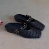Версия из мягкой кожи~ универсальная черная плетеная ажурная дышащая сумка, туфли с квадратным носком, женские полушлепанцы с металлической надписью