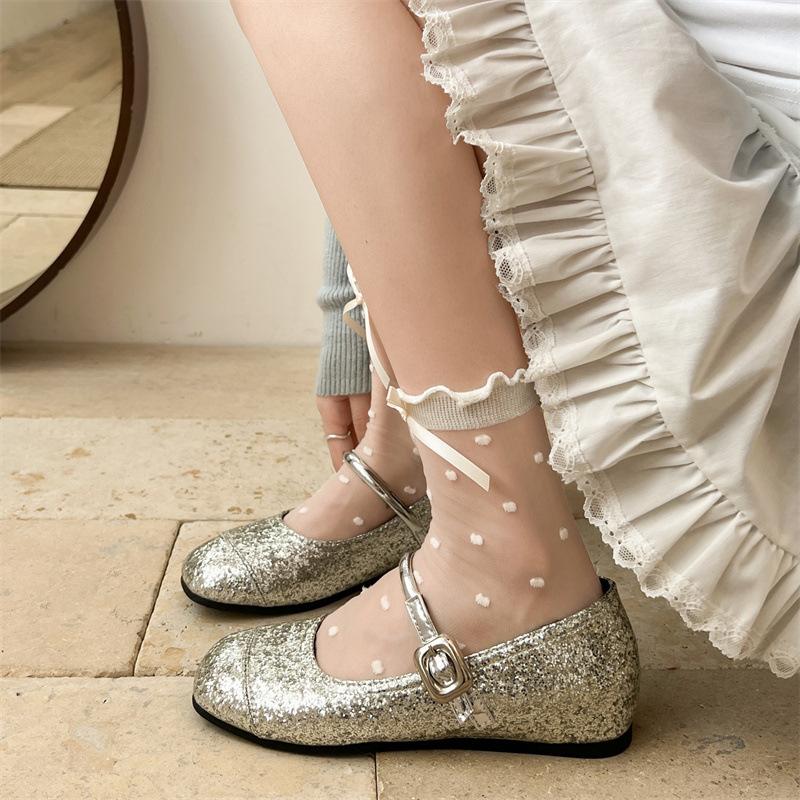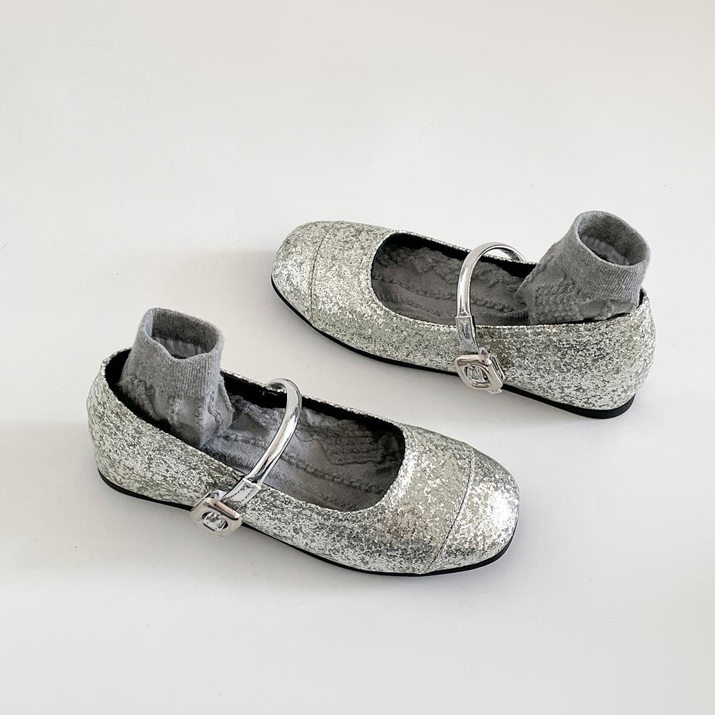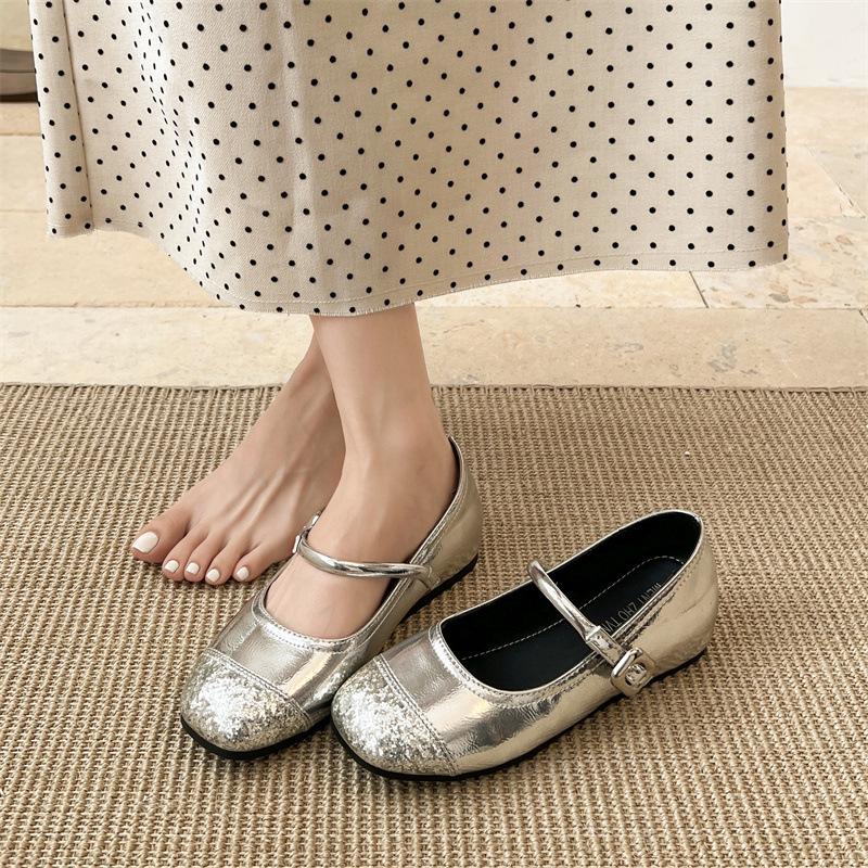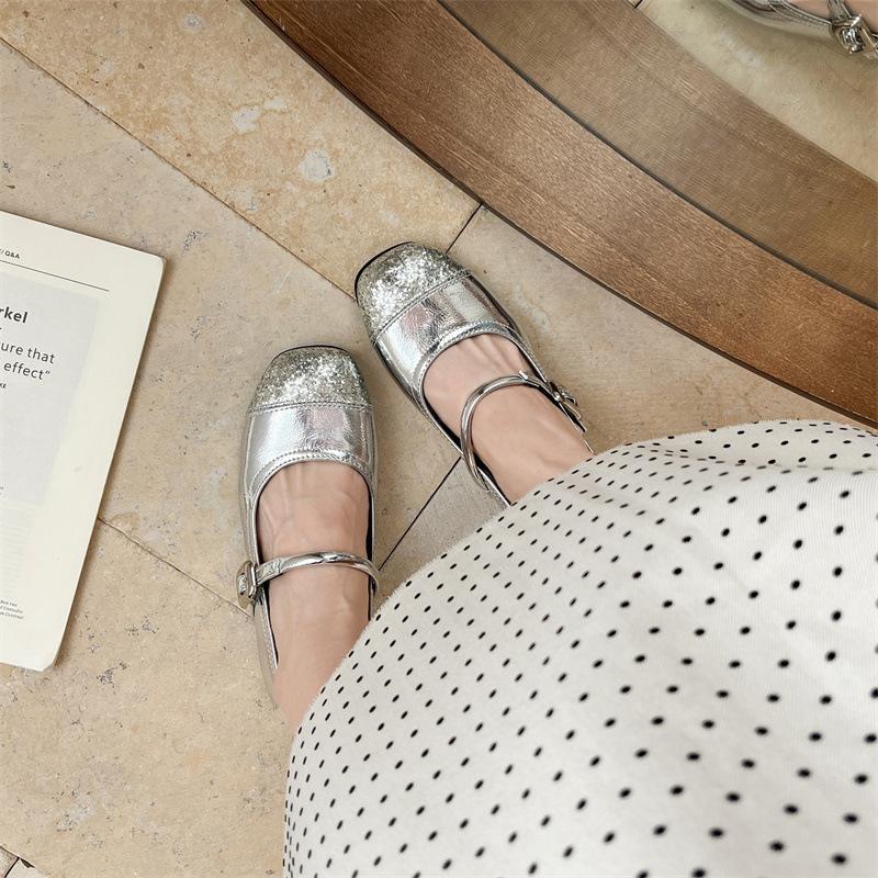 Ретро серебристые французские туфли на плоской подошве с внутренней платформой, увеличивающей высоту, с легким вырезом, женские летние 2025, новые универсальные туфли Мэри Джейн на мягкой подошве