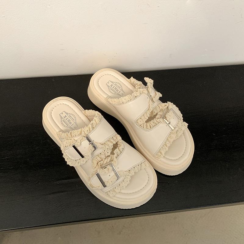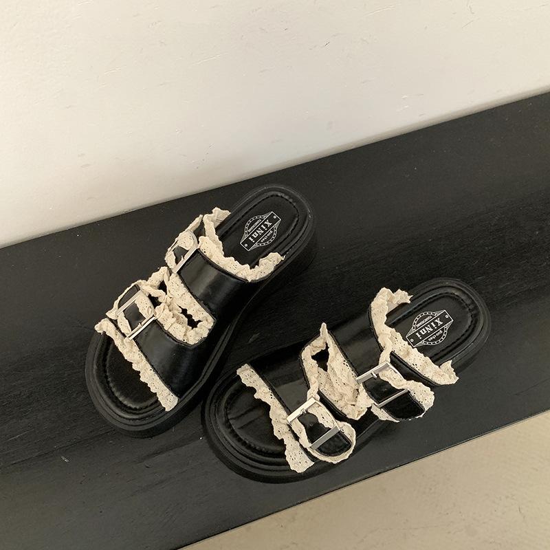 Fashion tassel black popular thick-soled one-word slippers women's summer wear 2025 new high-end cool slippers